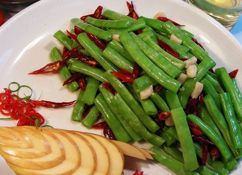 麻辣四季豆(大蒜+大葱),一起食用后易出现腹痛、腹泻等症状。